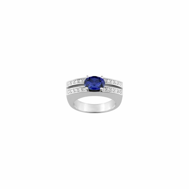 Bague en or blanc et saphir